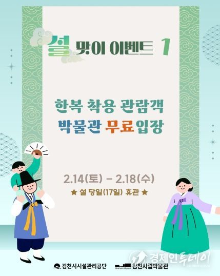 경제인투데이 류현민 기자 | 김천시시설관리공단(이사장 김재광)은 2026년 설 명절을 맞아 감문국이야기나라와 김천시립박물관을 중심으로 가족 단위 관람객이 함께 즐길 수 있는 ‘설맞이 문화 행사’를 운영한다. 이번 행사는 2월 14일부터 2월 18일까지 진행된다.