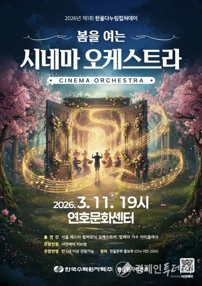 경제인투데이 류현민 기자 | 한국수력원자력(주) 한울원자력본부는 3월 11일 19시 울진군 연호문화센터에서 제1회 한울다누림컬쳐데이 '봄을 여는 시네마 오케스트라'를 개최한다.