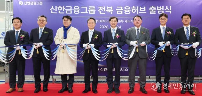 24일 전주 만성동에서 김종훈 도 경제부지사, 진옥동 신한금융그룹 회장, 김성주 국민연금공단 이사장, 우범기 전주시장 등이 참석한 가운데 ‘신한금융그룹 전북 금융허브 출범식 및 신한펀드파트너스 전주본부 개소식’이 열렸다.
