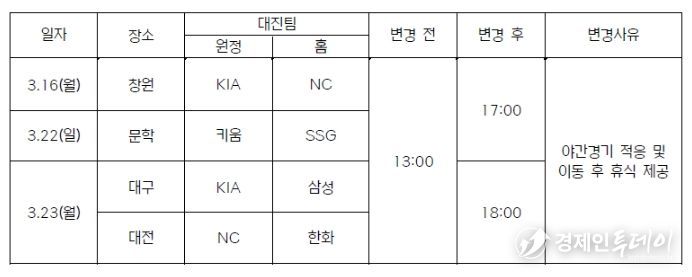 KBO 시범경기 개시 시간 변경