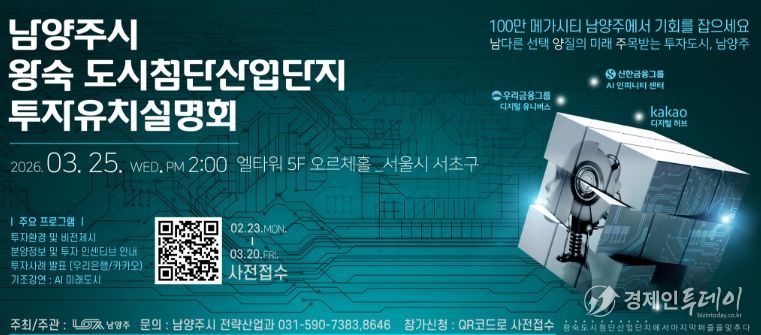 한편 이번 투자유치설명회 사전접수는 3월 20일까지 진행되며, 참여를 희망하는 기업은 시 누리집 배너 또는 행사 포스터에 게재된 QR코드를 통해 신청할 수 있다.