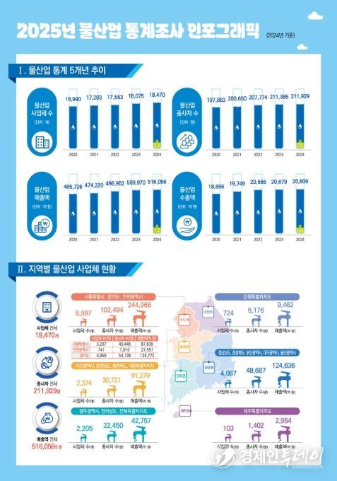 2024년 기준 물산업 사업체 수는 전년도(1만 8,075개) 대비 약 2.2% 증가한 1만 8,470개로 나타났다.