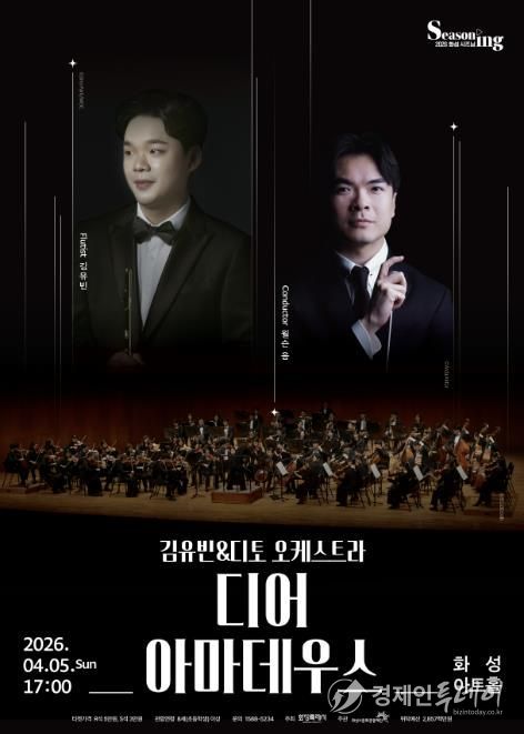 경제인투데이 류현민 기자 | (재)화성시문화관광재단은 오는 4월 5일 오후 5시, 화성아트홀에서 김유빈&디토 오케스트라 디어 아마데우스 공연을 개최한다.