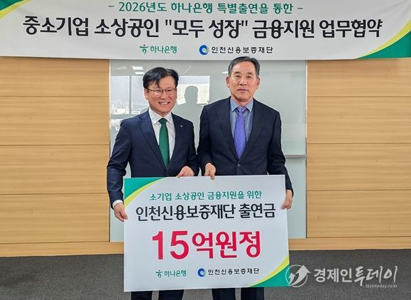 경제인투데이 류현민 기자 | 인천신용보증재단은 하나은행과 함께 인천 지역 중소기업과 소상공인의 안정적인 자금 조달을 지원하기 위한 '중소기업·소상공인 “모두 성장” 금융지원 업무협약'을 체결했다고 밝혔다.