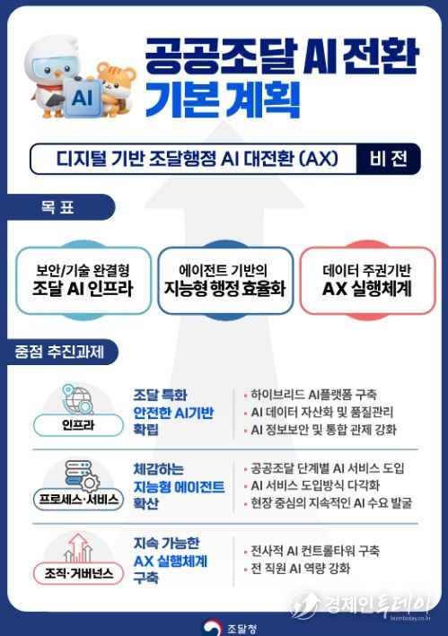 경제인투데이 류현민 기자 | 조달청은 공공조달에서 활용가능한 AI 서비스의 지속적인 발굴과 안정적이고 체계적인 서비스 제공을 위해 '공공조달 AI 전환 기본계획'을 마련했다고 19일 밝혔다.