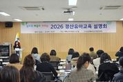 경제인투데이 류현민 기자 | 경산교육지원청은 1월 27일 관내 공·사립유치원 교원 50여명을 대상으로 놀이로 배움이 자라는 2026 경산유아교육 계획 설명회를 개최했다. 이번 설명회는 2026학년도 유아교육 주요 정책 방향과 추진 과제를 안내하고, 유치원 운영 전반에 대한 이해를 높이기 위해 마련됐다. 설명회에서는 △유아교육 정책 및 주요 사업 안내 △ 유치원 운영 및 지원 사항 △질의응답 등이 진행됐다. 설명회에 참석한 유치원 교원은 추진 방향과 추진 내용을 꼼꼼히 살피고, 유치원별 유아교육계획에 반영해야 할 부분에 대한 의견을 나누며, ‘배움을 삶으로 실천하는 따뜻한 경산교육’을 충실히 실행하기 위한 소통의 시간을 가졌다. 경산교육지원청 정수권 교육장은 “2026 경산유아교육계획을 바탕으로 특색있고 의미 있는 유치원 교육과정을 수립하여 놀이로 배움이 자라는 경산유아교육이 실천되기를 바란다.”라고 밝혔다.
