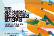 경제인투데이 류현민 기자 | 제주특별자치도교육청이 주최하고 제주학생연합윈드오케스트라가 주관하는 ‘제5회 제주학생연합윈드오케스트라 정기연주회’가 31일 오후 6시 30분 제주문예회관 대극장에서 열린다. 제주학생연합윈드오케스트라는 제주 도내 중·고등학교 재학생들로 구성된 연합 예술단체로 2019년 고등학생 중심의‘제주고교연합 윈드오케스트라 다혼디’로 출범한 뒤 2023년 현재의 명칭으로 변경하며 중학생까지 참여 범위를 확대했다. 현재 도내 중학교 8개교, 고등학교 9개교 등 총 17개 학교에서 모인 60여 명의 학생이 단원으로 활동하며 음악적 역량을 키워가고 있다. 이번 정기연주회는 스승과 제자, 선후배가 음악으로 하나 되는 ‘연결’의 의미를 주제로 마련됐다. 1부 무대에서는 대기고등학교 현민관 교사의 지휘 아래 △머큐리(Mercury) △부드러운 빗속에서(In a Gentle Rain) △아르메니안 댄스 파트1번(Armenian Dances Part 1) 등 웅장한 관악 합주곡이 연주된다. 이어 제주고등학교 최재광 교사가 협연자로 나서 △그라나다(Granada) △뮤지컬 '지킬 앤 하이드