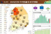 경제인투데이 류현민 기자 | 국토교통부와 한국부동산원(원장 손태락)은 '25년 연간 지가변동률 및 토지거래량을 발표했다. ◆ 지가변동률 '25년 연간 전국 지가는 2.25% 상승했다. 상승폭은 '24년(2.15%) 대비 0.10%p 확대, '23년(0.82%) 대비 1.43%p 확대된 것으로 나타났다. '25년 4분기 지가변동률은 0.61%로, 3분기(0.58%) 대비 0.03%p, '24년 4분기(0.56%) 대비 0.05%p 높은 수준으로 나타났다. (지역별) '25년 지가변동률은 수도권(2.77% → 3.08%)은 '24년 변동률 대비 높은 수준, 지방권(1.10% → 0.82%)은 낮은 수준을 보였다. (시·도) 서울(4.02%), 경기(2.32%) 2개 시도가 전국 평균(2.25%)을 상회했다. (시·군·구) 서울 강남구 6.18%, 서울 용산구 6.15%, 서울 서초구 5.19% 등 252개 시군구 중 44개 시군구가 전국 평균을 상회했다. 또한, 252개 시군구 중 200개 시군구가 0.00% ~ 2.40% 변동률을 보인 가운데, 수도권이 지방보다