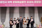 경제인투데이 유종운 기자 | 용인특례시는 지난 19일 시청 컨벤션홀에서 지역 문화와 예술 발전에 공로를 인정받은 유공자 45명에게 시장 표창을 수여했다고 21일 밝혔다. 시는 문화예술 발전과 박물관 유물기증 감사패 수상자를 선정했다. 문화예술발전 부문에는 용인문화재단, 용인예총, 용인문화원 등 단체와 장애인, 청년, 기업을 대상으로 지역 문화예술 활성화에 기여한 42명이 선정됐다. 남구만 초상과 약천지 등의 역사유물을 용인시박물관 기획전시에 빌려 준 의령남씨 문충공파 종중과 40여년 동안 향토 역사를 연구해 수집한 민요녹음자료 3588점을 기증한 홍순석 강남대학교 명예교수에게 감사패를 전달했다. 이상일 용인특례시장은 “세계 반도체 중심 도시 용인은 산업과 함께 문화와 예술의 발전을 위한 노력도 중요하다고 생각한다”며 “2024년 갑진년 용인특례시는 다양한 문화예술 사업을 진행할 예정으로 지역의 문화와 예술 발전을 위해 이 자리에 참석한 여러분의 지혜가 필요하다”고 말했다.
