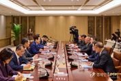 경제인투데이 류현민 기자 | 이재명 대통령은 16일 오후 2시부터 2시간 넘게 대통령실 회의실에서 이재용 삼성전자 회장, 최태원 SK그룹 회장, 정의선 현대차그룹 회장, 구광모 LG그룹 회장, 여승주 한화그룹 부회장, 정기선 HD현대 수석부회장, 서정진 셀트리온 회장 등 경제인들과 산업부 장관 그리고 안보실장, 정책실장, 경제안보비서관 등이 참석한 가운데 '관세협상 후속 민관 합동회의'를 주재했다. 회의는 한미 관세협상이 마무리되면서 기업들의 국내 투자 확대, 수출 다변화, 중소기업과의 상생 협력 및 한미 투자 패키지를 활용한 대미 시장 진출과 양국 경제 협력 방안을 논의하기 위해 마련됐다. 간담회에서 이 대통령은 한미 통상 안보 협상 과정에서 가장 많이 애를 쓴 건 기업인들이라면서 기업인들의 헌신과 노력에 감사를 전했다. 동시에, 앞으로가 더욱 중요하다면서 경제 문제 해결의 첨병인 기업들이 자유롭게 활동할 수 있게 정부가 최선을 다하겠다 밝혔다. 더불어 대미 투자가 강화되면서 국내 투자가 줄지 않을까 하는 걱정이 없도록 국내 투자에 마음을 써 달라면서, 특히 지방 산업 활성화에 기업인들이 더 많은 관심을 가져