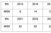 경제인투데이 류현민 기자 | 삼성 김재윤이 역대 6번째 6시즌 연속 10세이브와 역대 31번째 개인 통산 600경기 출장이라는 두 개의 대기록 달성을 눈앞에 두고 있다. 김재윤은 29일 기준 9세이브를 기록 중으로, 역대 6번째 6시즌 연속 두 자릿수 세이브 달성까지 단 1개만을 남겨두고 있다. 또한 이번 시즌 53경기, 개인 통산 599경기에 등판하며, 600경기 출장까지 한 경기만을 앞두고 있다. 2014년 데뷔한 김재윤은 2016시즌 14세이브를 올리며 개인 첫 두 자릿수 세이브를 기록했다. 이후 2020시즌부터 본격적으로 마무리 투수를 맡아 21세이브를 기록했고, 2020시즌을 시작으로 5시즌 연속 10세이브 이상을 이어왔다. 특히 2022시즌에는 개인 한 시즌 최다이자 리그 2위에 해당하는 33세이브를 기록했다. 김재윤은 8월에도 13경기에 등판해, 평균자책점 1.35, 4세이브를 기록하며 팀 불펜의 핵심 역할을 이어가고 있다. KBO는 김재윤이 600경기 출장을 달성할 경우, 표창 규정에 의거해 기념상을 수여할 예정이다