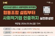 경제인투데이 류현민 기자 | 김포시가 사회문제 해결을 위한 참신한 아이디어와 실행력을 갖춘 사회적경제기업 육성을 위해 ‘2026년 김포시 사회적경제 아카데미’를 개설하고, 오는 3월 3일까지 수강생을 모집한다. 이번 아카데미는 평소 사회적경제에 관심 있는 김포시민은 물론, 연내 협동조합 설립과 사회적기업 인증을 준비 중인 관내 기업, 단체라면 누구나 신청할 수 있다. 교육 과정은 ▲사회적기업 개념 및 인·지정 요건 ▲협동조합 개념, 설립 절차 및 인가 요건 ▲2026년 지원제도 등 사회적경제에 대한 기본 개념을 습득하고, 연내 진입을 위한 사전 준비가 가능하도록 실전형으로 구성했다. 특히 전문가 1:1 멘토링을 통해 ▲사업 아이템의 경쟁력 및 지속가능성 진단 ▲정관, 사업계획서 등 필수서류 작성 ▲심사 및 현장실사 대비 전략 등 기업 맞춤형 컨설팅이 후속으로 지원될 예정이다. 수강신청은 3월 3일까지 온라인으로 가능하며, 자세한 사항은 김포시청 홈페이지를 참조하거나 김포시청 지역경제과로 문의하면 된다. 김포시는 ‘일자리창출을 위한 재정지원’을 비롯해 ‘전략모델 개발비’, ‘교육·컨설팅’