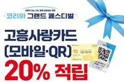 경제인투데이 류현민 기자 | 고흥군은 전국 대규모 할인 축제인 ‘코리아 그랜드 페스티벌’을 기념해 10월 29일부터 11월 9일까지 12일간 모바일 고흥사랑상품권 20% 적립 이벤트를 진행한다고 밝혔다. ‘코리아 그랜드 페스티벌’은 내수 회복을 위해 정부 10개 부처 합동 주관으로 유통업계와 소상공인 등 3만여 업체가 참여하는 국가 단위 대규모 소비축제로, 10월 29일부터 11월 9일까지 12일간 진행된다. 고흥군은 전국적으로 진행되는 코리아 그랜드 페스티벌에 발맞춰 지역 소비 및 상권 활성화를 위해 모바일 고흥사랑상품권 적립률을 5% 상향해 총 20% 특별 적립 이벤트를 마련했다. 행사 기간 모바일 고흥사랑상품권을 결제하면 결제금액의 20%를 적립할 수 있으며, 적립된 캐쉬백은 가맹점에서 일반 상품권과 동일하게 사용할 수 있다. 모바일 고흥사랑상품권은 ‘지역상품권 chak’ 앱을 통해 충전하며, 고흥사랑카드 또는 chak 어플 QR코드를 이용해 가맹점에서 사용할 수 있다. 군은 이번 20% 특별 적립 이벤트가 11월 6일부터 9일까지 4일간 진행되는 제5회 고흥유자축제의 성공에도 큰