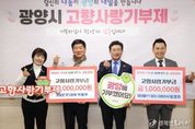 경제인투데이 류현민 기자 | 광양시는 6일 광양시청에서 광양 출신 향우 2명이 고향에 대한 애정과 응원의 마음을 전하는 ‘고향사랑기부금 전달식’을 개최했다고 밝혔다. 이날 전달식에는 미라클YT펌프 원영태 대표와 광양본가기정떡 박용무 대표가 참석해 각 100만 원씩 총 200만 원의 고향사랑기부금을 시에 전달했다. 이번 기부는 지방재정 확충과 지역경제 활성화를 목적으로 추진되고 있는 고향사랑기부제의 취지에 공감한 기부자들이 자발적으로 참여해 더욱 의미를 더했다. 특히 원영태 대표는 3년 연속으로 고향사랑기부제에 동참하며 꾸준한 기부 실천을 통해 지역 사랑과 나눔 문화 확산에 앞장서고 있다. 원영태 대표는 “고향 광양에 대한 마음을 담아 지역 발전에 조금이나마 보탬이 되고자 참여했다”며 “이번 기부가 고향사랑기부제의 취지를 널리 알리고, 더 많은 시민과 향우의 참여로 이어지는 계기가 되길 바란다”고 말했다. 박용무 대표는 “지역과 함께 성장해 온 만큼, 앞으로도 지역과 상생할 수 있는 다양한 방법을 지속적으로 고민하겠다”고 밝혔다. 광양시 관계자는 “광양 발전을 위해 늘 아낌없