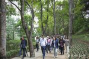 경제인투데이 류현민 기자 | 서울 서초구는 10월 14일, 도심 속 힐링 명소인 ‘길마중 초록숲길’에서 지역주민들과 함께하는 건강걷기 행사를 개최했다고 밝혔다. 행사는 시원한 가을 바람 속 올해 새단장된 길마중 초록숲길 2단계 구간(서초IC~서초1교)과 3단계 구간 일부(서초1교~명달공원)을 주민들과 함께 걸으며 힐링과 행복을 함께 나누는 시간으로 진행됐다. 시작에 앞서 구는 길마중 초록숲길 2단계 조성 과정과 주요 개선 내용을 주민들과 공유하며 새단장의 의미를 되새겼다. 이어 웰니스 연구소 소장을 맡고 있는 김응석 강사와 함께 간단한 레크리에이션과 스트레칭으로 몸을 푼 뒤, 올바른 걷기 자세를 배우며 본격적인 행사가 시작됐다. 전성수 서초구청장도 직접 참여해 주민들과 나란히 걸으며 소통의 시간을 가졌다. 전 구청장은 “숲길을 걸으며 건강과 힐링, 행복까지 누릴 수 있도록 ‘길마중 초록숲길’을 새롭게 단장했다”며 “용허리근린공원 인근에는 황토체험장과 서초에서 규모가 가장 큰 맨발체험 공간도 있으니, 오늘 직접 걸으며 얼마나 좋은지 느껴보시길 바란다”고 말했다. 주민들은 새단장한 숲길을 걷고, 맨발길