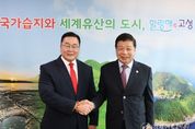 경제인투데이 류현민 기자 | 고성군은 10월 16일 군수실에서 이상근 군수와 차강 웁궁 자담바 주부산 몽골 영사가 만나 제6회 고성독수리 생태축제 및 한·몽 교류 협력 방안을 논의했다고 밝혔다. 이번 만남은 독수리 보호와 생태관광 네트워크 구축, 한국 거주 몽골 교민의 고성군 방문 추진 등 실무 협의의 일환으로 마련됐다. 이상근 군수는 차강 웁궁 자담바 영사에게 오는 12월 6일부터 7일까지 열리는 ‘제6회 고성독수리 생태축제’에 참석해 줄 것을 요청했으며, 공룡 발자국 화석으로 유명한 고성군과 진품 공룡 화석을 다수 보유한 몽골 간의 과학·교육 교류 방안도 함께 논의했다. 차강 웁궁 자담바 영사는 이날 2025년 경남 고성 공룡세계엑스포 행사장을 방문해 고성군의 문화·관광 인프라를 둘러보고, 향후 양국 간의 문화 교류 확대 가능성에 대한 의견을 나눴다. 이상근 고성군수는 “고성과 몽골은 독수리와 공룡이라는 자연의 유산으로 연결된 소중한 인연”이라며, “이번 방문으로 양국의 우호가 더욱 깊어지고, 고성군이 국제적인 생태·문화도시로 성장할 수 있는 계기가 되길 바란다”라고 말했다.