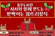 경제인투데이 류현민 기자 | 김포시 풍무도서관에서 초등학생을 대상으로 ‘사서와 함께 만드는 반짝이는 3D트리장식’을 오는 12월 10일 오후 4시부터 6시까지 운영한다. 이번 프로그램은 수강생의 학년에 따라 제작 도구의 난이도와 창작물이 구분되며, 참여 학생의 수준에 맞춘 맞춤형 체험활동으로 운영된다. 3D펜을 활용한 제작 경험을 통해 공간·입체 감각을 향상시키는 동시에 연말 크리스마스 시즌의 특색있는 분위기를 느낄 수 있다. 특히 풍무도서관 특화담당 사서가 직접 프로그램을 진행함으로써 안전하고 체계적인 지도가 이뤄질 것이다. 참여 신청은 11월 25일 오전 10시부터 풍무도서관 홈페이지에서 가능하며, 초등학생(1~6학년) 총 12명을 선착순 모집한다.