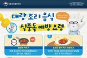 경제인투데이 류현민 기자 | ■ 대량 조리 음식 식중독 예방요령 ① 완전히 익히기 육류 중심온도 75°C(어패류 85°C) 1분 이상 가열하기 ② 조리된 음식 즉시 제공하기 조리된 상태로 상온에 방치되지 않도록 조리 후 즉시 제공하기 ③ 가열 조리 후 신속히 냉각하기 가열 조리 후 즉시 섭취하지 않을 시, 여러 용기로 나누어 담거나 신속히 냉각하기 ④ 보관온도 유지하기 따뜻한 음식은 60°C 이상, 차가운 음식은 5°C 이하로 보관하기 ⑤ 재가열하여 섭취하기 보관된 음식 섭취 시, 충분히 가열 후 섭취하기 ■ 운반 시 식중독 예방 요령 · 차량·운반기구 청결히 관리하기 - 오염되기 쉬운 곳 세척·소독하고 청결 상태 수시로 확인하기 · 운반 시 음식 온도 관리 주의 - 따뜻한 음식과 차가운 음식이 서로 닿지 않게 구분하기 · 안전하게 포장하기 - 음식이 새거나 오염되지 않도록 완전히 밀폐되게 포장하기 · 운반 후 즉시 제공하기 - 음식 운반이 완료되면 즉시 제공하기