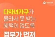 경제인투데이 류현민 기자 | ■ 다자녀가구가 몰라서 못 받는 혜택이 없도록 정부가 먼저 챙겨드립니다! ▷ 혜택알리미 - 내가 몰라도 찾아서 알려주는 개인 맞춤형 알림 서비스 · 다자녀 국가장학금 · 사회적 배려대상자 도시가스요금 경감 · 전기 요금 복지할인 · 에너지복지요금 지원 · 다자녀가구 자동차취득세 감면 ※ 소득, 거주지 등 개인별 상황에 따라 받을 수 있는 혜택은 달라질 수 있어요. ■ 청년이 몰라서 못 받는 혜택이 없도록 정부가 먼저 챙겨드립니다! ▷ 혜택알리미 - 내가 몰라도 찾아서 알려주는 개인 맞춤형 알림 서비스 · 청년 일경험 지원 · 청년농 창업투자 심층 컨설팅 · 청년주택드림 청약통장 · 청년 월세 한시 특별 지원 · 청년 문화예술패스 지원 ※ 소득, 거주지 등 개인별 상황에 따라 받을 수 있는 혜택은 달라질 수 있어요. ■ 어르신이 몰라서 못 받는 혜택이 없도록 정부가 먼저 챙겨드립니다! ▷ 혜택알리미 - 내가 몰라도 찾아서 알려주는 개인 맞춤형 알림 서비스 · 65세 이상 폐렴구균 국가예방접종사업 · 노인 무릎인공관절 수술 지원 · 노인 일자리 및 사회활동 지원