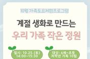 경제인투데이 류현민 기자 | 인천광역시교육청연수도서관은 오는 10월 25일 오후 2시 평생학습1실에서 가족 이용자를 위한 ‘10월 가족 토요체험 프로그램’을 운영한다. 이번 프로그램은 ‘우리 가족 마음 정원’을 주제로 가을의 정취를 담은 그림책을 함께 읽으며 가족의 마음을 돌아보고 함께 소통하는 시간을 갖는다. 이어지는 원예 활동에서는 계절 생화를 활용해 가족의 작은 정원을 만들며 자연과 감성을 나눌 예정이다. 참여 신청은 10월 13일부터 연수도서관 누리집에서 선착순 접수하며, 자세한 내용은 연수도서관 독서문화과 로 문의하면 된다.