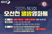경제인투데이 류현민 기자 | 오산시는 오는 10월 17일부터 26일까지 매주 금·토·일 저녁, 오산천(오색문화체육센터 뒤편)에서 시민들이 야외에서 영화를 즐길 수 있는 '2025 제3회 오산천 별밤영화제'를 개최한다고 밝혔다. 이번 영화제는 남녀노소 누구나 즐길 수 있는 총 10편의 애니메이션과 영화를 상영하며, 오산천을 방문하는 시민이라면 누구나 자유롭게 관람할 수 있다. 특히 올해는 관람객 편의를 위해 ‘배달음식 픽업존’을 운영하여, 휴대폰 앱으로 주문한 음식을 지정된 장소에서 간편하게 수령할 수 있다. 관람객들은 돗자리나 방석 등을 지참해, 자연 속에서 맛있는 음식과 함께 여유로운 영화 관람을 즐길 수 있다. 시 관계자는 “도심 속 자연과 문화가 조화를 이루는 오산천에서 열리는 이번 별밤영화제가 시민들에게 힐링과 특별한 문화 체험의 기회가 되길 바란다”고 전했다.