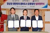 경제인투데이 류현민 기자 | 대한민국 문화도시로 지정된 진주와 안동, 통영 등 경상권 3개 도시들이 대한민국 문화도시의 성공적인 조성을 위한 협력의 첫걸음을 내딛었다. 진주시는 13일 진주성 ‘중영’에서 조규일 진주시장을 비롯해 권기창 안동시장, 허대양 통영부시장 등 3개 도시의 시장과 관계자들이 참석해 ‘경상권 대한민국 문화도시 업무협약식’을 갖고 문화도시의 비전과 협력방안을 공유했다. ‘경상권 대한민국 문화도시 업무협약’은 각 문화도시가 보유한 사업 운영방안과 전략, 문화 인프라를 상호 공유·활용해 업무역량을 강화하고 시너지를 창출하는데 목적이 있다. 이번 협약으로 경상권 문화도시는 ▲대한민국 문화도시 조성사업 공동추진 ▲문화예술인 교류 확대 ▲권역별 특성을 반영한 시민 참여형 문화프로그램 개발 ▲국내외 문화도시 네트워크 강화 등을 함께 추진하기로 했다. 조규일 진주시장은 “경상권 도시 간 유기적이고 협력적인 관계 형성과 상생발전을 통해 대한민국 문화도시 사업의 성공을 위해 오늘 자리를 마련하게 됐다”며, “문화로 빛나고 관광으로 즐거운 지속 가능한 서부경남 문화관광 생태계를 조성하여, ‘빛담