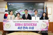 경제인투데이 류현민 기자 | 김해시가 지역경제를 살리는 바로미터인 고용안정에 힘을 쏟고 있다. 14일 시에 따르면 지역 현안 맞춤 일자리 정책을 비롯해 주력산업 중심 기업 투자유치, 미래 전략산업 육성 등 일자리 정책 전반에서 의미 있는 성과를 거두며 국제 정세 불확실성에 따른 장기 경기침체 속에서도 지역경제 성장과 활력에 기여하고 있다. 특히 최근 고용노동부 주최 ‘2025 전국 지자체 일자리대상’에서 우수상을 받으며 4년 연속, 역대 9번째 수상으로 지역 일자리 창출 선도 지자체로 입지를 굳히고 있다. 시는 올해 들어 고용률(15~64세) 66.9% 달성, 신규 일자리 3만개 창출을 목표로 하는 김해시의 일자리 정책 로드맵인 ‘2025년 일자리대책 추진계획’을 공시하고 일자리 분야 188억원을 투입해 고용 안정화에 집중해 왔다. 특히 지역 현안에 적극 대응한 맞춤 일자리 정책을 추진해 큰 호응을 얻고 있다. 주요 사업은 자동차산업 상생협약 확산 지원사업, 지역 산업 맞춤형 일자리창출 지원사업, 비정규직 근로자 지원사업 확대 등이다. ◆주력산업 미래자동차 상생 모델 추진(업종별 상생협
