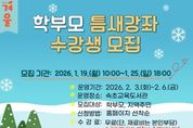 경제인투데이 류현민 기자 | 속초교육문화관은 3월 정규 강좌 개강에 앞서 학습 공백기를 활용한 학습 기회를 제공하고자, 2월 3일부터 6일까지 학부모와 지역주민을 대상으로 ‘겨울 학부모 틈새강좌’를 운영한다. 이번 틈새강좌는 △달콤한 저장법 수제 청 만들기 △자연 성분 그대로 천연비누 만들기 △실속있게 배우는 선물 · 보자기 포장법 △손맛 담은 떡 공방 △나를 가꾸는 메이크업 기초로 총 5강좌이다. 각 강좌는 3회차로 운영되며, 강좌별 모집인원은 10명이다. 수강 신청은 1월 19일 오전 10시부터 25일 오후 6시까지 속초교육문화관 누리집에서 선착순으로 신청할 수 있다. 이윤전 속초교육문화관장은 “틈새강좌가 실생활에 바로 활용할 수 있는 배움의 기회를 제공해 학습 공백기를 효과적으로 채우는 계기가 되길 바라며, 많은 학부모와 지역주민의 관심과 참여를 바란다.”라고 말했다. 기타 자세한 내용은 속초교육문화관 누리집 공지사항을 참고하거나 문헌정보과로 문의하면 된다.