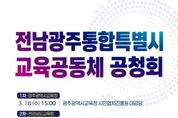 경제인투데이 류현민 기자 | 광주시교육청 ‘광주전남교육행정통합실무단’과 전남도교육청 ‘전남광주교육행정통합추진단’이 교육통합과 관련해 시도민의 이해를 돕기 위해 ‘전남광주통합특별시 교육공동체 공청회’를 개최한다. 이번 공청회는 광주 실무준비단과 전남 통합추진단이 지난 9일 실무 협의회를 통해 광주전남 통합교육체계 구축을 위한 교육공동체 의견수렴의 필요성에 대해 공감대를 형성하면서 마련했다. 공청회는 18일 오후 3시 광주시민협치진흥원 대강당과 23일 오후 3시 전남 순천만생태문화교육원 등에서 두 차례에 걸쳐 진행된다. 주요 내용은 ▲교육행정통합 추진방안 설명 및 경과 안내 ▲교육공동체의 질의에 대한 답변 ▲교육공동체 의견 수렴 등이다. 특히 광주 실무준비단과 전남 통합추진단 관계자들이 추진 경과를 설명하고, 이어 이정선 광주시교육감과 김대중 전남도교육감이 참석자들의 질의에 응답하며 궁금증을 해소할 예정이다. 공청회에는 교직원, 학부모, 학교운영위원 등 교육공동체 누구나 참여해 의견을 낼 수 있다. 광주 실무준비단과 전남 통합추진단은 매주 협의회를 열고, 통합교육체계 구축을 위