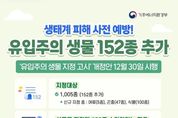경제인투데이 류현민 기자 | 생태계 피해 사전 예방! 유입주의 생물 152종 추가 - '유입주의 생물 지정 고시' 개정안 12월 30일 시행 ■ 지정대상 - 1,005종 (152종 추가) · 신규 지정 종: 어류(5종), 곤충(47종), 식물(100종) ■ 신규로 지정된 152종 수입하려는 경우 - 사전 관할 유역(지방)환경청 승인 필요 ※ 불법 수입 시 2년 이하 징역 또는 2천만원 이하 벌금 부과 ■ 확인방법 - 기후에너지환경부 누리집 및 한국외래생물정보시스템(2026년 1월 공개) 생태계 보전을 위해 유입주의 생물 수입에 각별한 주의를 기울여 주세요!