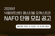 경제인투데이 류현민 기자 | 부산 강서구는 서부산 최초의 클래식 전문 공연장인 낙동아트센터와 함께할 ‘낙동아트센터 페스티벌 오케스트라(NAFO)’ 단원을 공개 모집한다고 밝혔다. 이번 모집을 통해 강서구는 수준 높은 음악적 역량과 열정을 지닌 연주자들로 오케스트라를 구성해, 향후 낙동아트센터에서 품격 있는 클래식 공연을 시민들에게 선보일 계획이다. NAFO는 내년 1월 낙동아트센터 정식 개관 기념 무대에서 말러 교향곡 제8번, 오페라 아이다, 발레 백조의 호수 등 세계적인 명작을 연주할 예정이다. 이에 앞서 오는 12월 24일, 말러 교향곡 제8번과 베토벤 교향곡 제9번 4악장을 연주하는 프리뷰 콘서트를 개최해, 정식 개관 전부터 웅장한 음악의 울림을 선사하며 낙동아트센터에 대한 시민들의 기대감을 높일 전망이다. 모집 분야는 ▲오케스트라 악장 ▲수석 ▲단원 ▲기획지원단원이며, 만 18세 이상이면 누구나 지원 가능하다. 접수 기간은 10월 10일부터 16일 오후 5시까지로, 강서구청 홈페이지에서 참여신청서를 내려받아 전자메일로 제출하면 된다. 전형은 기획지원단원의 경우 면접, 오케스트라 단원의 경우