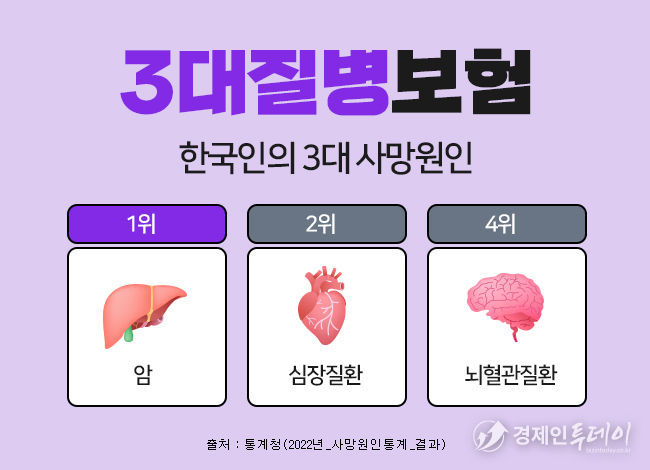 경제인투데이 류현민 기자 | 3대질병으로 일컬어지는 암, 뇌혈관질환, 심혈관질환은 한국인의 주요 사망원인에서 상위를 차지하고 있으며, 이에 대한 진단비를 집중적으로 보장해 주는 보험상품을 3대질병진단비 보험이라 할 수 있다.