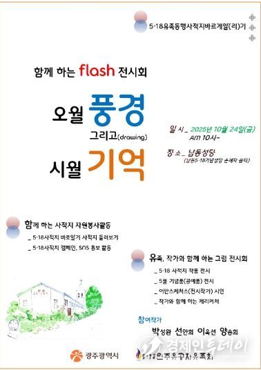 경제인투데이 류현민 기자 | 광주광역시는 5·18민주유공자유족회와 함께 24일 동구 남동5·18기념성당에서 시민과 함께하는 ‘오월 풍경 그리고(drawing) 시월 기억’ 전시회를 개최한다.