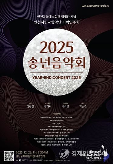 경제인투데이 류현민 기자 | 인천시립교향악단이 한 해의 마지막을 화려하게 장식할 인천문화예술회관 재개관 기념 기획연주회 〈2025 송년음악회〉의 프로그램과 티켓 예매 일정을 전격 공개했다.