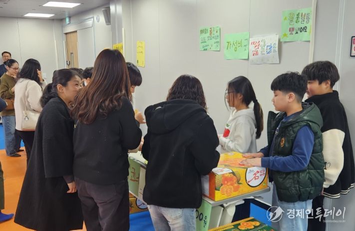 경제인투데이 류현민 기자 | 제주도교육청 납읍초등학교는 16일 4학년 학생들이 한 해 동안 가꾼 감귤을 수확해 판매하는 ‘감귤학교 감귤 시장’을 직접 준비하고 운영했다.