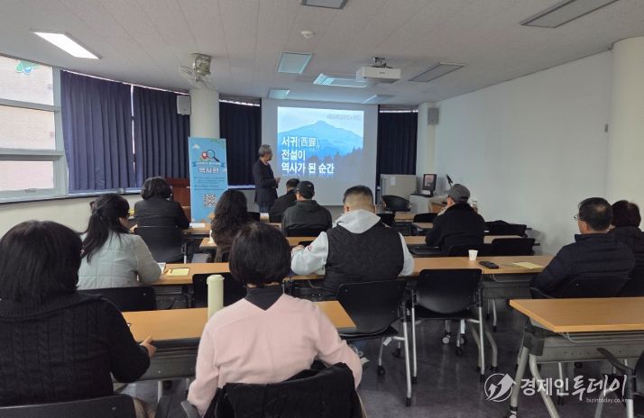 첫 회차가 열린 6일에는‘서귀(西歸), 전설이 역사가 된 순간’을 주제로 서귀포의 형성과 전설에 대한 강연이 진행돼 서귀포에서 가장 오래된 마을로 알려진 홍로마을의 역사와 발자취를 살펴보고 불로초 전설과 관련 기록을 통해 전설 속에 담긴 역사적 의미를 함께 탐구하는 시간이 마련됐다.