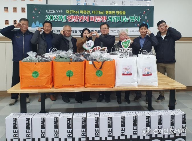 경제인투데이 유종운 기자 | 남양주시 양정동 지역사회보장협의체는 지난 13일 온도변화에 취약한 주거 취약계층을 위해 ‘연말연시 따뜻한 사랑 나눔 행사’를 진행했다.