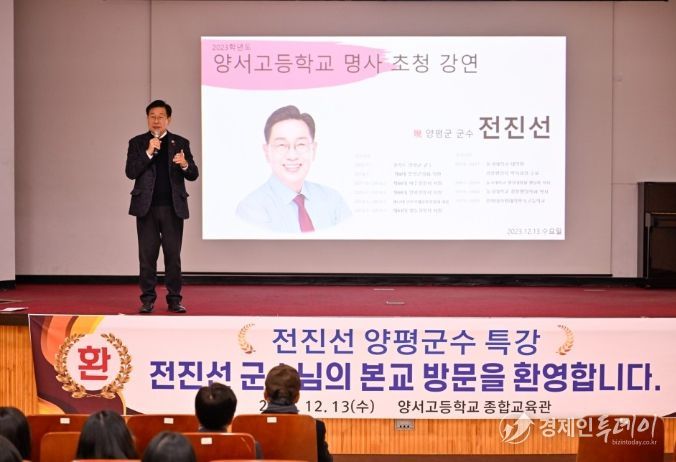 경제인투데이 유종운 기자 | 전진선 양평군수는 지난 13일 양서고등학교 종합교육관에서 2024학년도 대학수학능력시험을 치른 양서고 3학년 학생 200여 명과 교직원들을 대상으로 “미래를 위해 준비하고 꿈에 도전하라”를 주제로 특강을 진행했다.