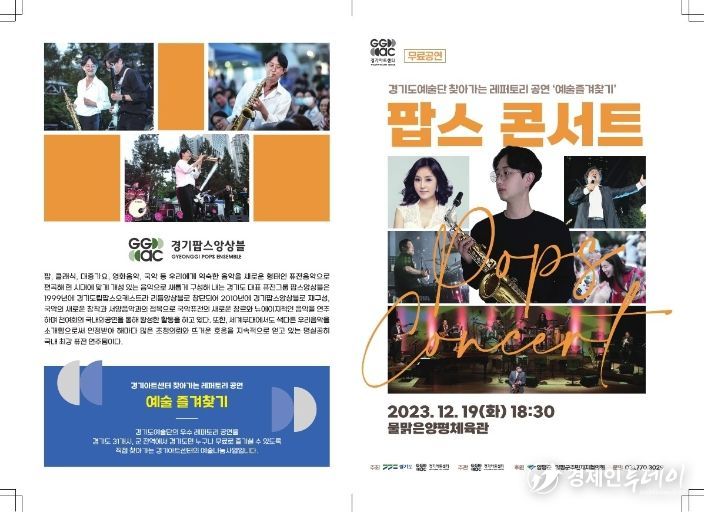 ‘팝스콘서트’는 경기아트센터 ‘예술즐겨찾기’ 사업의 하나로, 경기도예술단의 우수 레퍼토리를 경기도 31개 시군에 선보이는 사업이다.