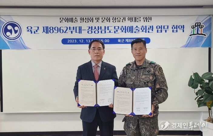 경제인투데이 유종운 기자 | 경남문화예술회관과 육군 39사단 용호여단은 13일 오후 3시 용호여단 부대 내에서 문화예술 활성화를 위한 업무 협약식을 가졌다.