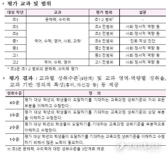 경제인투데이 유종운 기자 | 교육부와 한국교육과정평가원(원장 오승걸)은 학생 개개인의 학업 수준을 정확히 진단하기 위한 맞춤형 학업성취도 평가를 2024년 초에 시행한다.