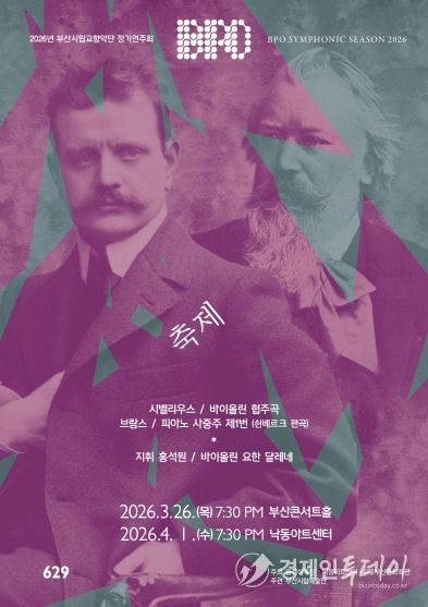 부산시립교향악단의 제629회 정기연주회 '축제'가 열린다. 이번 무대에서는 시벨리우스의 바이올린 협주곡, 브람스의 피아노 4중주 제1번을 쇤베르크가 오케스트라 편성으로 편곡한 작품을 선보인다. 공연은 이달 26일 부산콘서트홀에서, 다음달 1일 낙동아트센터에서 각각 열린다.