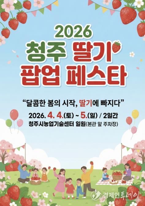 경제인투데이 류현민 기자 | 청주시는 오는 4월 4일부터 5일까지 청주시농업기술센터 본관 앞 주차장 일원에서 ‘2026 청주 딸기 팝업 페스타’를 개최한다고 13일 밝혔다.