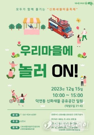 경제인투데이 유종운 기자 | 순천시는 오는 15일 덕연동 신화새뜰공유공간(덕암동359-2) 일원에서 마을 축제인 우리동네에 놀러ON’ 행사를 개최한다고 밝혔다.