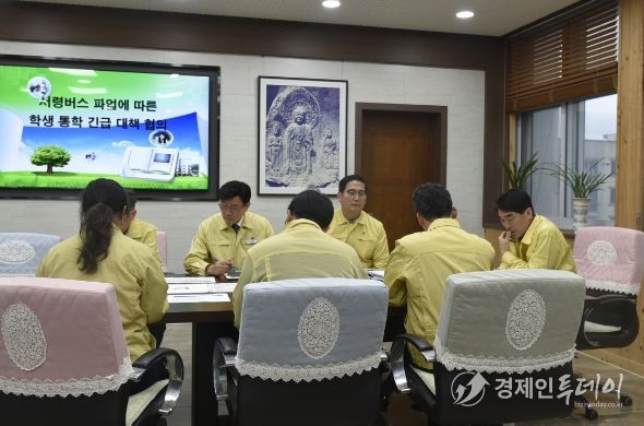 이번 대책회의는 시내버스 운행 중단으로 인해 학생들이 등,하교시 겪을 불편을 최소화하기 위한 방안을 같이 고민하고 각급학교장들의 의견을 수렴하기 위해 마련됐으며, 회의 결과 수렴된 의견은 적극 반영하여 추진 할 계획이다.