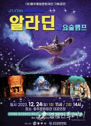 경제인투데이 유종운 기자 | (재)충주중원문화재단은 12월 송년의 달을 맞이하여 온 가족이 함께 즐길 수 있는 가족 뮤지컬 ‘알라딘과 요술램프’를 오는 24일 오전 11시, 오후 2시 총 2회로 나눠 충주문화회관 공연장에서 선보인다.