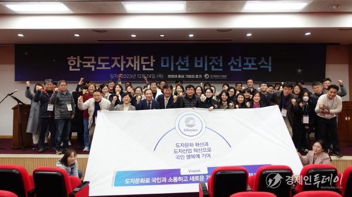 경제인투데이 유종운 기자 | 한국도자재단이 14일 양평 코바코연수원에서 ‘비전 선포식’을 열고 새 미션으로 ‘도자문화 확산과 도자산업 혁신으로 국민 행복에 기여’를 설정하고 ‘도자문화로 국민과 소통하고 새로운 가치를 창조하는 전문기관’이라는 새 비전을 공표했다.