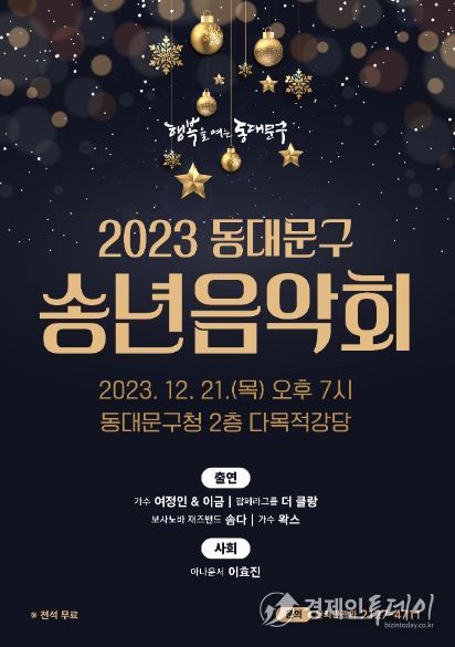 경제인투데이 유종운 기자 | 2023년 계묘년을 보내며 동대문구가 구민들을 위해 풍성한 음악선물을 준비했다.