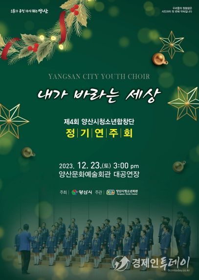 경제인투데이 유종운 기자 | 양산시청소년합창단은 오는 23일 오후 3시 양산문화예술회관 대공연장에서 제4회 양산시청소년합창단 정기연주회를 개최한다.