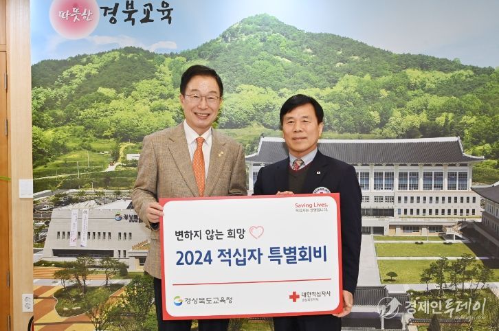 경제인투데이 유종운 기자 | 경북교육청은 15일 본관 접견실에서 ‘2024년 적십자 특별회비’를 대한적십자사 경북지사(회장 김재왕)에 전달했다.